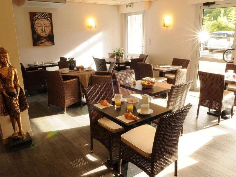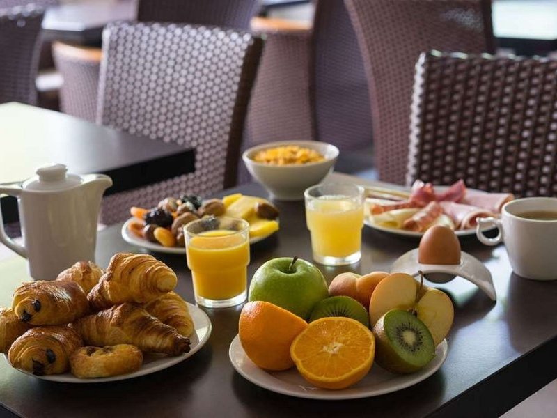 The breakfast area of our establishment offers a buffet-style breakfast with self-service, featuring a wide selection of hot beverages, fruit juices, as well as fresh sweet and savory products.